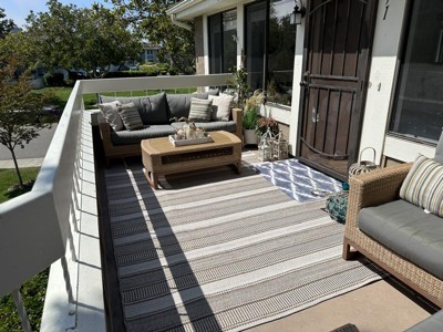 A: This rug is designed specifically for outdoor spaces, enhancing outdoor decor.