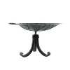 This Aspen Leaf Birdbath has a small Tripod Stand that can be placed on a deck or tabletop, or a pedestal. The copper bowl has a curled stem detail, embossed leaf design and verdigris finish. The threaded base on the underside of the bowl attaches to the small three-footed wrought iron stand and is perfect for rock gardens, tabletops, and low border plantings.