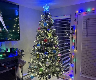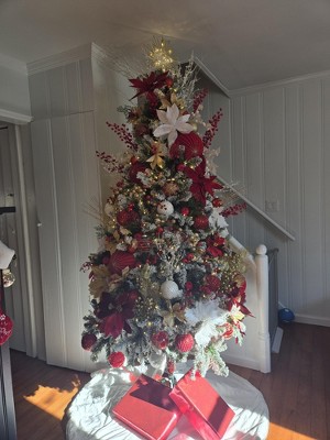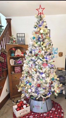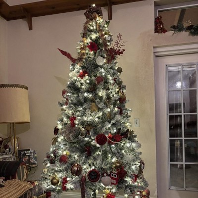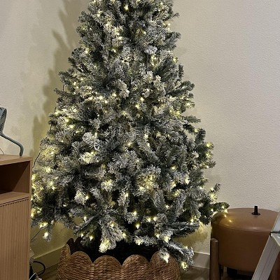 This tree is absolutely gorgeous! It looks just like a snow covered tree and it's the perfect size for our house. It looks amazing. I did add more lights to the tree, but that is my personal preference. The only down fall is the flocking comes off pretty easily while setting it up and fluffing out the branches.