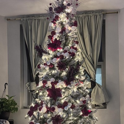 Perfect for those that have 9ft ceilings, easy set up, a tad messy when setting up but nothing a little vacuuming couldn't fix. Lights are a warm bright very complimenting to the flocked design.