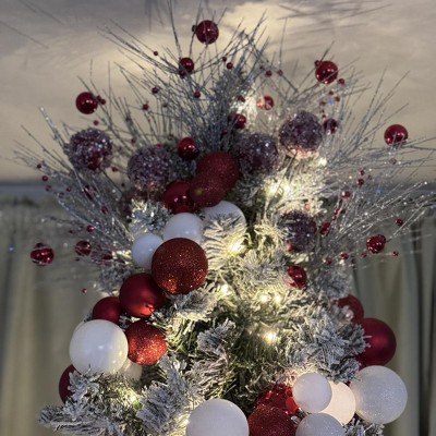 I love the aesthetic and how it it very fluffy and tall. But, some of the pine leaves fell off during fluffing. Also, the pre-lit lights, do not come with a plug to connect the Christmas tree topper.