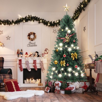 Add a touch of modern elegance to your holiday decor with this 7.5ft pre-lit pencil Christmas tree. Its slim design, with a base width of only 43 inches, saves space while giving the appearance of greater height, making it perfect for small apartments, stair corners, or porches. Crafted from high-quality PE and PVC materials, the tree is flame-retardant and safe, with finely detailed leaves that mimic the natural texture and color of a real pine tree. Pre-installed with 240 warm white LED lights featuring eight lighting modes—including steady, flashing, and gradient—this tree creates a cozy, festive atmosphere effortlessly. The innovative hinged branches expand automatically, allowing easy setup in just a few steps, while the foldable metal stand ensures stability and long-lasting use. Ideal as a main holiday centerpiece or as an elegant accent in any modern space, this pencil tree combines style, convenience, and holiday charm.