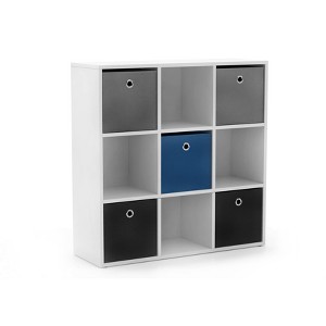 The Utility Bookcase with 5 Fabric Bins from Buylateral is ideal storage for any children’s bedroom or play area. Designed with grommet holes for easy pull-out storage bins, each compartment provides ample space for various books, games, devices and more. Constructed of sturdy MDF and durable fabric, the white bookcase includes mounting hardware for installation.