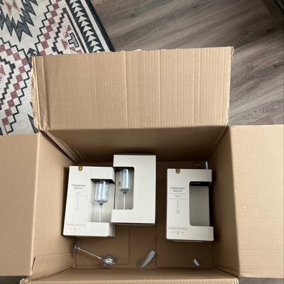 Elevate your drinkware collection with this 4-Pack Stemmed Champagne Cocktail Glass Set from Threshold™. Made of glass, these glasses are designed in a blue hue that makes your favorite drinks even more enticing. With a 7.78-fluid-ounce capacity, these glasses are ideal for holding champagne and an array of cold beverages.