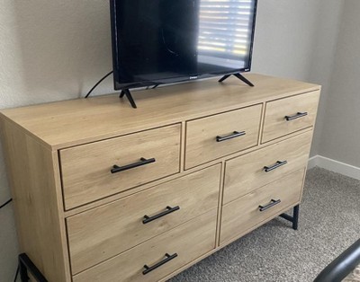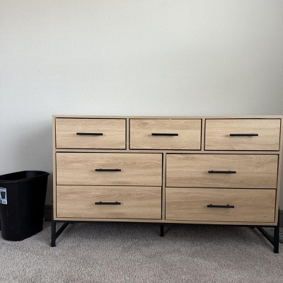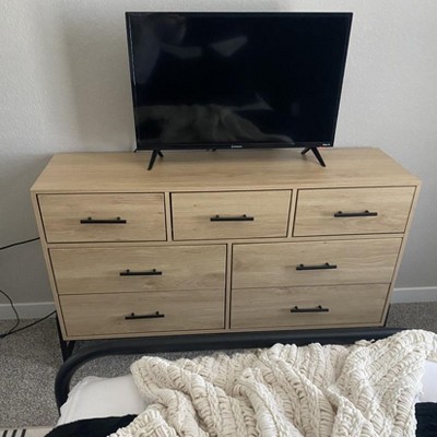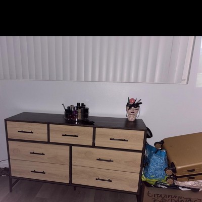 7 Dresser for Bedroom, 52" Wide Dresser, Wide Drawer with Storage Freestanding, Wooden Closet Storage Chest for Living Room, Bedroom, Natural + Black