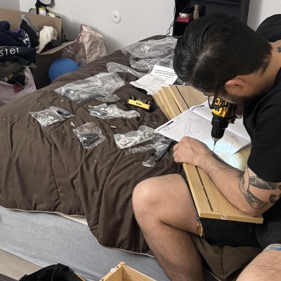 Difficult to put together. Took about 4 hours. Some pieces didn’t line up correctly, so I had to fix the holes. Directions weren’t super clear so some pieces were put on backwards and needed to be redone. (I built 4 pieces of furniture in 2 days and this was by far the most difficult)