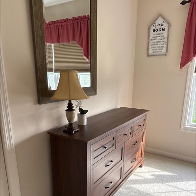 This dresser looks great in my guest room. It is a great price for this dresser. The only drawback is it does come in a million pieces. The directions were easy to follow and I was able to put it together without assistance. However it did take about 5 hours. If you’re super handy, it might have been quicker.