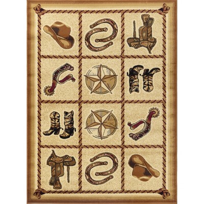 7 ft. 10 in. x 10 ft. 3 in. Southwest Area Rug with Western Symbols, Stain Resistant, Low Pile Height