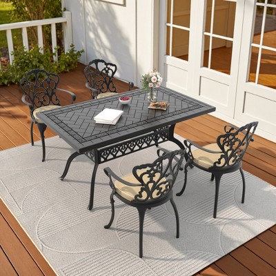 7-PCPremium Black Cast Aluminum Patio Set - Weather-Resistant Outdoor Table & Chairs with Beige Cushions