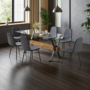 7-Piece Dining Set with Glass Table and Armless Chairs