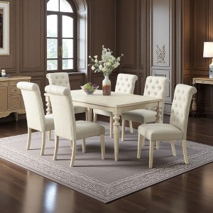 7-Piece Dining Set with Turned-Leg Table and 6 Tufted Chairs
