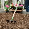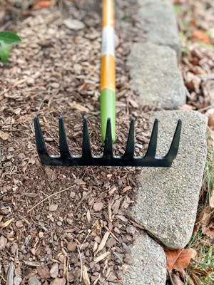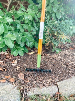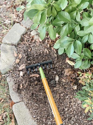 The Ames Floral Garden Rake is a high quality and durable rake with strong metal tines. It is lightweight and has a cushion handle that makes it easy and comfortable to use. It reduces fatigue by easily breaking and loosening soil and makes gardening less of a chore.