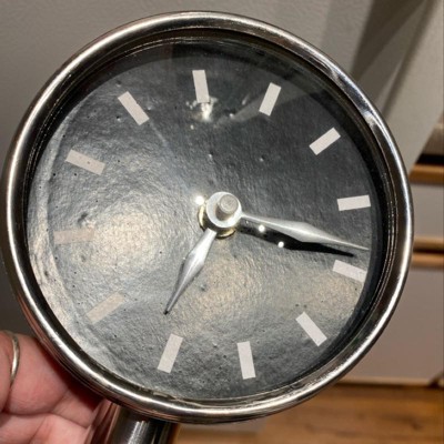 - Decorative table clock is crafted from high quality stainless steel and tempered glass