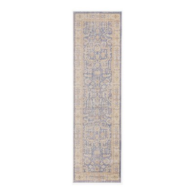 Set an inviting tone in your space with this 6-foot blue rust and beige medallion round rug. Ideal for spaces with kids and pets, this rug is stain resistant to help repel dirt and spilled liquids. Built to last, this rug crafted from polypropylene fibers is known for its durability and long lasting appeal. Rugs are a great way to showcase your style, hide imperfections, warm your home and reduce noise. This larger sized, traditional styled rug is ready to create a focal point or statement piece in your room. 79.00-inch h x 79.00-inch w x 0.15-inch d.