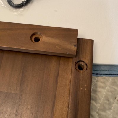 I am a skilled woodworker and normally would make the piece myself. However, I moved and did not have my shop set back up. We needed something quick and this looked beautiful. This piece has potential. However, it arrived with one piece that was unusable due to none of the holes lining up. After talking with four different people over several days, the company shipped out the replacement part at no cost. Two of the five holes lined up on the replacement part. The others were 1/4” to 1/2” off. 25% of the total screw holes for the entire thing were off by more than 1/4”. I ended up having to use 10 wood screws to make this piece usable. It does not sit flat. It took over 3 hrs to put together over several weeks while waiting on parts. The quality control for this is substandard.