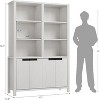 - 【Double Wide Bookshelf with Doors】Overall dimensions: 11.8"D x 47.2"W x 70.7"H.This spacious bookshelf comes with 3 open shelves and 4 hidden shelves with cabinet doors, providing you with ample storage space and helping to keep items organized and within reach.