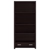 Make plenty of room for reading material. Designed to offer a modern look, this bookcase makes itself at home in an office environment or living space. Four shelves offer plenty of room for volumes of books, periodicals, and decor. Find hidden storage space in a single drawer below, with smooth-operating Euro glides. This tasteful bookcase is a perfect partner to an expanded desk set.