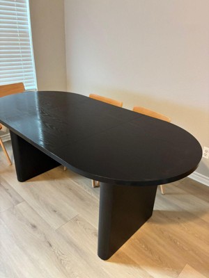 - Rustic Farmhouse Style: This wooden dining table features a smooth oval top and two sturdy, rounded rectangle legs. Its simple yet stylish design suits family meals or gatherings. Solid wood adds charm and reliable support to any decor.