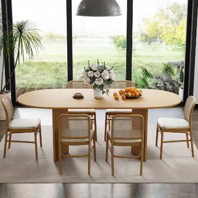 70.8" Modern Oval Dining Table for 6-8 – Sturdy Kitchen Table with Wooden Strip Base for Kitchen, Living Room, Office and Restaurant