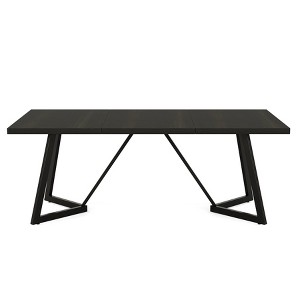 This sleek rectangular table combines modern design with practical functionality, featuring a rich wood-grain MDF top and sturdy metal legs for lasting durability. The spacious 70.87" surface comfortably seats family and guests, while its neutral black/brown finish complements any décor. Perfect for dining, work, or entertaining, it transitions effortlessly from home kitchens to offices. With easy assembly and scratch-resistant footpads, this low-maintenance table balances style and convenience—ideal for everyday living.