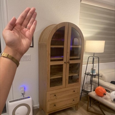 This arched cabinet is a perfect blend of style The tall, elegant design with tempered glass doors adds a modern yet vintage charm to my space.
