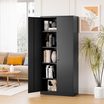70" Tall Kitchen Pantry Cabinet, Fluted Wooden Cupboard Storage Cabinet with Adjustable Shelves, Freestanding Bathroom Storage Cabinet, Grey