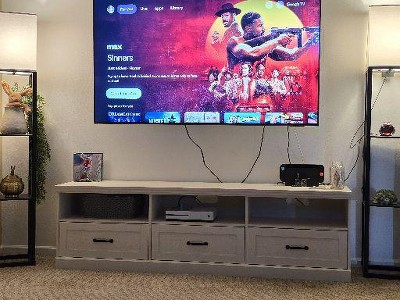 CABLE MANAGEMENT: This entertainment stand features 3 metal handles for a sophisticated touch. The drawers open smoothly and quietly for easy access, keeping your space organized and clutter-free. With 3 cable holes at the back, this tv entertainment center effectively conceals cables for a tidy, streamlined appearance