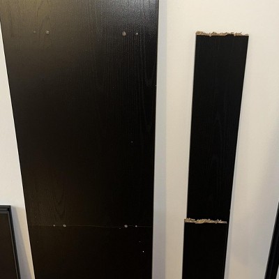 Just as described and pictured. Assembly takes time as one would expect while ordering online so I am not going to fault the product on that basis. The product was packaged very well and everything came in one piece (which is very lucky when you consider the length of this product). Nice finish, smooth roller drawers to hide storage. I am very impressed.
