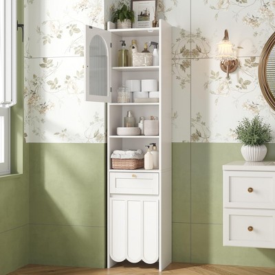 Upgrade your home organization with this tall storage cabinet, designed to combine style, versatility, and functionality in one sleek piece. The spacious vertical design makes it easy to maximize storage without taking up too much floor space, making this cabinet a perfect fit for bathrooms, kitchens, offices, or any area where clutter needs to be tamed. The five interior sections provide ample space for towels, toiletries, pantry supplies, or home office essentials, keeping everything neat and accessible. Adjustable shelves let you customize the cabinet to suit your needs, whether you’re storing tall bottles, stacks of linens, or small everyday items.