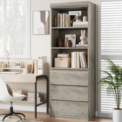 71.4in Tall Wooden Arched Bookshelf with Doors Farmhouse Rounded Bookcases for Living Room, Kitchen, Office White