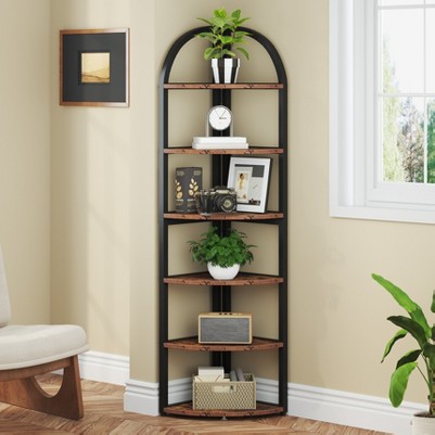 The floor corner shelf offers a space-saving solution, well-suited to the tightest corners of your home, increasing storage capacity. This multifunctional tall plant stand doubles as a wall corner shelf, display shelf and mini-bookshelf, ideal for decorative items, potted plants and photos. The smooth, fan-shaped shelves have rounded edges for safety, crucial in homes with children. The 90° right rear angle enables it to stand freely or sit flush against a wall. Crafted from high-quality thick board and sturdy metal, this durable counter shelf supports up to 30lbs per shelf and is built to last.