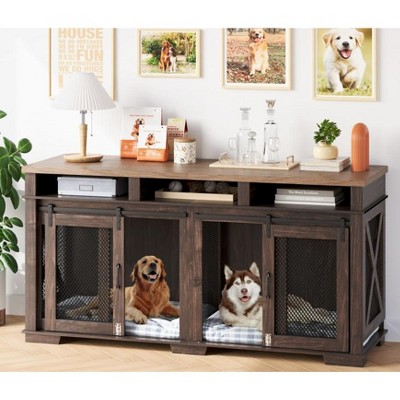 71" Dog Crate Furniture, Double Dog Crate Table, Double Dog Kennel Furniture With 3 Storages And Removable Divider For Large Medium Dogs