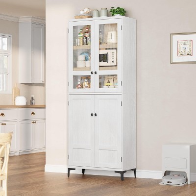 71 Inch Tall Storage Cabinet with Glass Door, Kitchen Pantry 5 Tier Bathroom Cabinet Adjustable Shelves