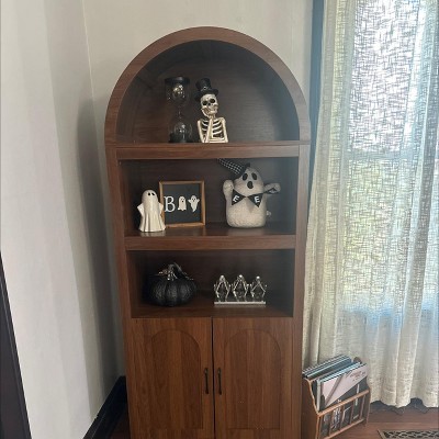 71" Tall Bookcase Arched Cabinet, Modern 5 Tier Bookshelf Mid Century Arched Display Cabinet with Fluted Doors, for Office Dining Living Room
