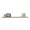 Organize your home and free countertops from clutter with this stylish shelf. This floating shelf with invisible brackets comes in a beautiful driftwood finish. This shelf measures 72 Inch Wide x 1.5 Inch Height x 8 Inch Depth, and has a load capacity of 17 lbs. These shelves are simple to install with a single leveling step and all mounting hardware and instructions are included. They hang on walls with no visible screws, connectors, or tracks. These shelves pair beautifully with rustic, farmhouse, beach, or spa design themes. These shelves offer attractive storage space for laundry rooms, mud rooms, kitchens, and more! Buy two or three floating shelves together to fill an empty wall space and display functional items like dishes, pictures, candles, towels, laundry soap, kitchen items, or children's stuffed animals. This shelf will perfectly compliment the decor of your home. Floating shelves are decorative and practical storage solutions for any home or office. The driftwood floating wall mounted shelf blends nicely with neutral interior design trends. It pairs beautifully with Rustic or spa design themes, and is perfect for living rooms, bedrooms, and bathrooms.