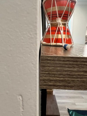 The shelf arrived in great condition with hardware included. Its durable, but lightweight build made hanging a breeze. It is a great addition to my wall over the couch.