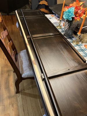 We love this tv console. The color is brown but it is almost black which I was hoping for. It is well made and sturdy. Only problem we had is there is a hole in the bottom of one of the drawers. We think it happened enroute (hole in the side of the box). The company said we could send it back (no way, it took 5 hours for my husband to put it together or give us a $30 refund. We took the refund. We got it during a 20% sale so that helped. I love the fact that Target accepts online returns (even when bought through a third party) right at their store.