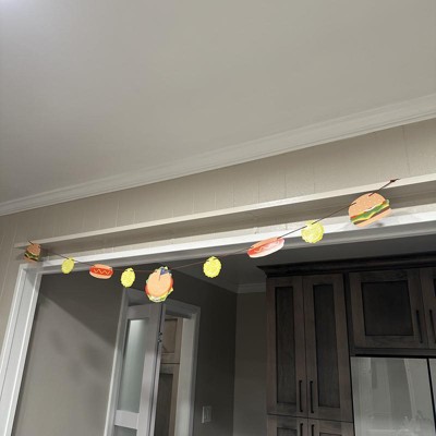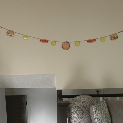 [This review was collected as part of a promotion.] I got this because I'm a bit obsessed with food themed decor and this was like nothing else I'd seen. Most food themed decorative items are of sweet foods rather than savory so I appreciate finds like this. I really love the cartoony art style and the slightly muted colors. (They appear more muted in real life than they do in the product photo.) The only downsides are that 6 ft is somewhat short for a garland and it does tangle very easily. This garland is such a fun and unique decoration for any summer celebration. I received an incentive to write this review.