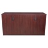 The Legacy Storage Collection offers it all from combo files and bookcases to stackable storage and laterals. This Storage Buffet looks great in conference rooms, executive offices, lounges and cafes, resource libraries and more. At 36-inches high, it can also double as an extra work or storage surface. It has four doors that pivot on European style hinges that open to a spacious interior. There are four adjustable shelves that can be moved in 1-inch increments. Adjustable glides on the bottom of the base keep shelves level and are easy to adjust. Finished in a classic Mahogany laminate, storage components coordinate with other Legacy furniture which makes customizing easy. The Legacy collection is constructed of a 1-inch thick thermal fused melamine laminate with a 3-millimeter commercial grade matching PVC edge. Laminates are scratch, stain and scald resistant. Legacy casegoods are backed by a 10-year limited manufacturer's warranty.