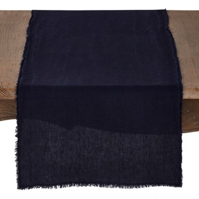 72" x 16" Cotton Waffle Weave Fringed Table Runner Blue: Geometric Abstract Rectangle - Saro Lifestyle