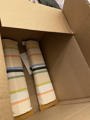 A: Yes, it features a multicolor striped print with white scalloped-detailed edging for added style.