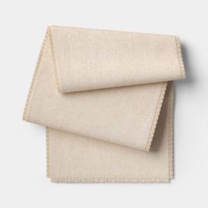 Bring a natural touch to your dining table with this Woven Table Runner from Threshold™. This woven table runner showcases a subtle textured pattern in a natural finish, and its decorated with fringe accents on all sides for added appeal. Made from a mix of cotton and jute material, this woven table runner helps protect your table from accidental spills and is suitable for any occasion. Best of all, it's machine washable for easy maintenance.