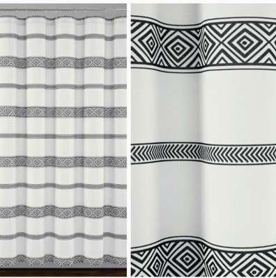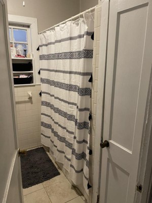 72"x72" Ava Boho Striped Tassel Yarn Dyed Eco-Friendly Recycled Cotton Shower Curtain Black/White - Lush Décor: Chic Bathroom Accessory