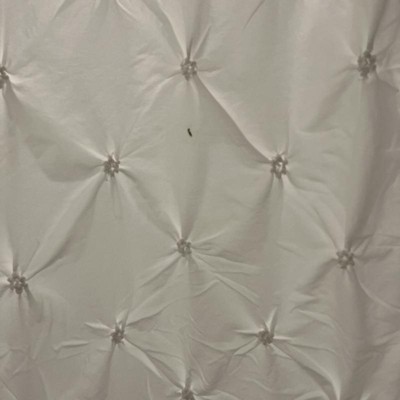 Add elegance to your bathroom with the Lush Decor Ravello Pintuck Shower Curtain. Distinguished by its pintuck embellishment, this bathroom curtain provides a crinkled-textured diamond pattern, a one-of-a-kind look that truly enhances your style. This glam shower curtains pintuck detailing is created with a decorative stitch that adds dimension and texture to the tonal pattern. These white shower curtains have a timeless look that is easy to style in any primary, guest, or young adult's bathroom. It fits well into many design themes, like transitional, farmhouse, French Country, or traditional glam. This shower curtain is also perfect if you are transitioning to a mature bathroom design. Each side of the shower curtain measures 72 inches. The 12 button holes at the top of this shower curtain make it easy to hang with hooks or rings, ensuring a simple installation process. Because this is a fabric shower curtain, we recommend pairing it with a liner, sold separately. This bathroom curtain is STANDARD 100 by OEKO-TEX® certified, all components have been tested and certified free from harmful substances. This shower curtain offers easy maintenance, simply machine wash cold on gentle cycle and tumble dry on low. If needed use a non-chlorine bleach for cleaning or a steamer to release wrinkles.