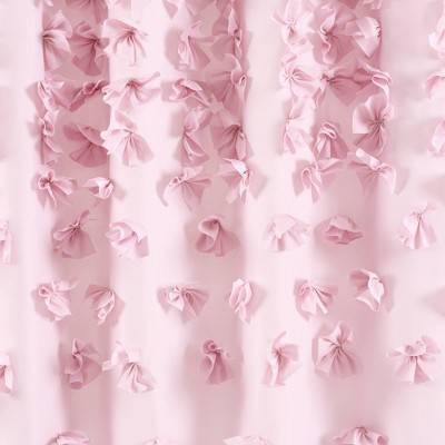 Beautify your bathroom with the charming textured design of the Lush Decor Riley Shower Curtain. The beautifully crafted bows cascade down the solid colored curtain, adding a delicate, feminine touch to your primary, guest, or kid's bathroom. This charming bathroom curtain features handmade bows that offer a one-of-a-kind effect as they adorn the top of the shower curtain and cascade towards the bottom. This elegant girly shower curtains for bathroom will add a soft and feminine style to your space. The bow shower curtain measures 72 inches by 72 inches. This beautiful design adds romantic texture to your coquette, vintage glam, or cottage styled home. The 12 button holes at the top of this fabric shower curtains make it easy to hang with hooks or rings, ensuring a simple installation process. Because this is a fabric shower curtain, we recommend pairing it with a liner, sold separately. This shower curtain is STANDARD 100 by OEKO-TEX® certified, all components have been tested and certified free from harmful substances. To care for this delicate shower curtain hand wash separately in cold water and hang to dry. Use non-chlorine bleach or a steamer if needed. Please refer to label for full care instructions.