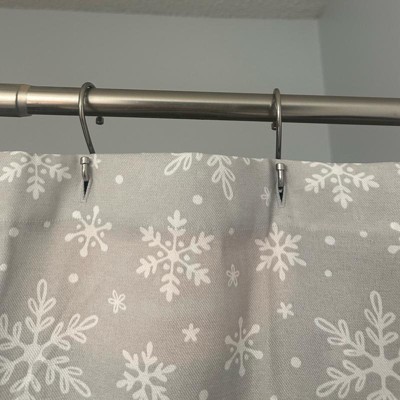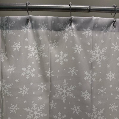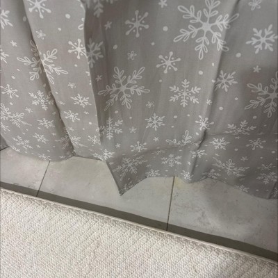 Bring festive style to your bathroom with this 72-Inch x 72-Inch Snowflake Christmas Shower Curtain from Wondershop™. This decorative shower curtain is adorned with a seamless print of white snowflakes on a gray backdrop for a fun seasonal look. Crafted from a twill fabric blend of recycled polyester and cotton with a buttonhole top for easy hanging, this curtain is also machine washable for convenient cleaning.