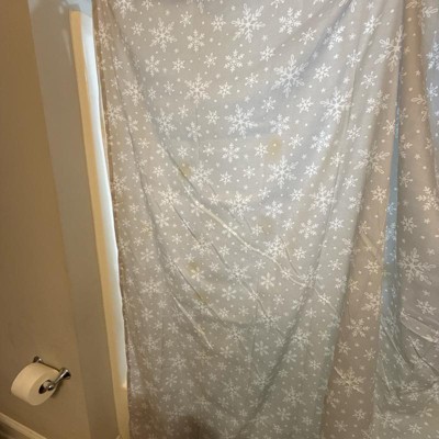 [This review was collected as part of a promotion.] This is a snowflake shower curtain that was surprisingly much better quality than expected. I thought it was going to be a cheap, vinyl, one season-use shower curtain but instead this is a machine washable fabric curtain that I will be able to use for many seasons. The snowflake pattern is perfect for the winter without being too “Christmas forward.” This is easy to install on your shower hooks and it is a standard size so no need for any measuring. I received an incentive to write this review.