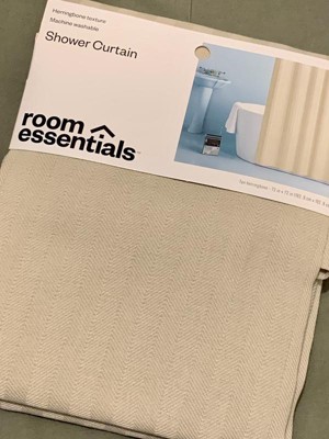 Elevate your bathroom decor with this Fabric Herringbone Shower Curtain from Room Essentials™. Crafted from 100% recycled polyester, this woven shower curtain features a buttonhole top for easy installation and is machine washable for convenient cleaning. It's designed with a classic herringbone pattern, infusing spa-like elegance while enhancing the privacy and style of your bathtub or shower stall.