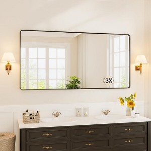Black Metal Framed Bathroom Mirror for Over Sink 72 * 36" Vanity Rounded Rectangle Wall Mirror with 3X Magnifying Gass Wall Mounted Home Decor (Hangs Horizontally or Vertically)