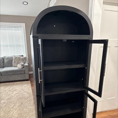 72" Arched Bookshelf with 4 Doors - Modern Farmhouse Bookcase with Open Shelf for Living Room & Bedroom Black
